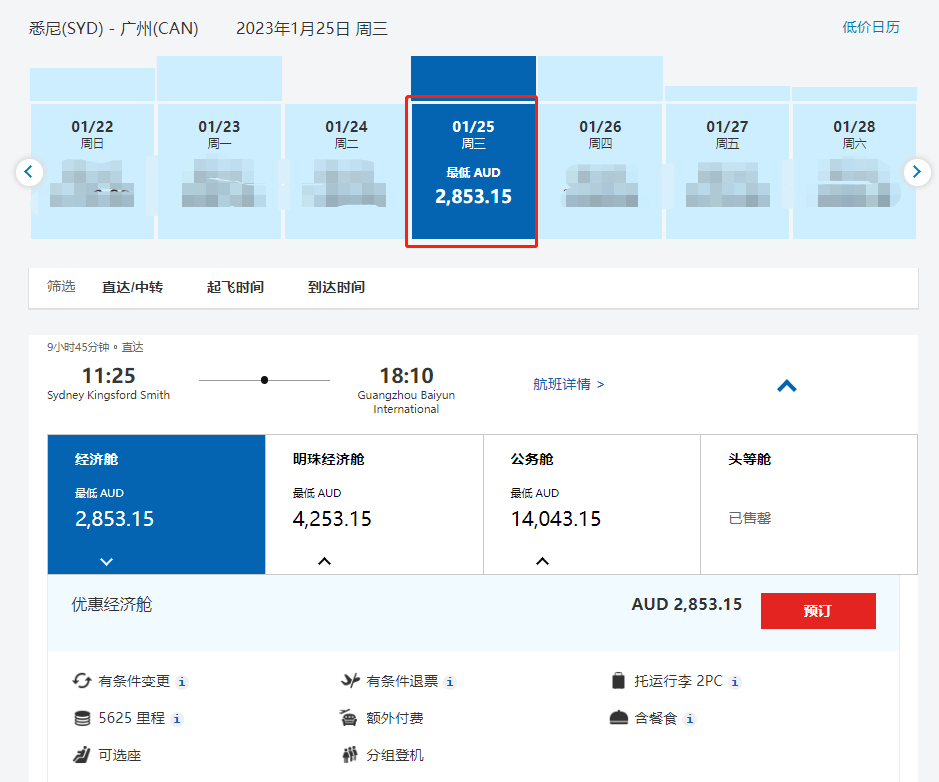 如果是考虑节后错峰回国,价格更加优惠,1月25日的单程回国机票价格为含税2853澳币起,有需要的旅客可以尽快购票。